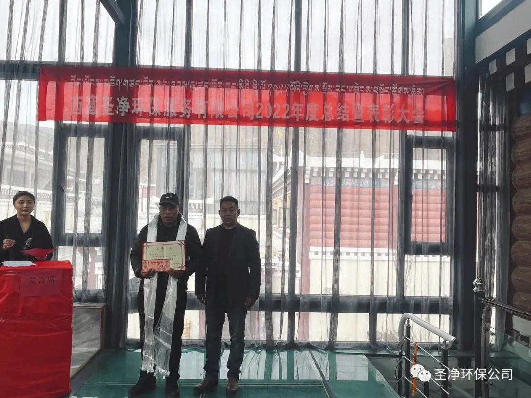 隨后副總經(jīng)理尼瑪次仁宣讀《西藏圣凈環(huán)保服務(wù)有限公司2022年度優(yōu)秀部門、優(yōu)秀經(jīng)理、勇于擔(dān)當責(zé)任獎、優(yōu)秀廠長、先進個人、優(yōu)秀員工的表彰決定》,由主席臺領(lǐng)導(dǎo)為獲獎部門、員工頒發(fā)獎狀、獎金,給所有員工發(fā)放年終績效獎。