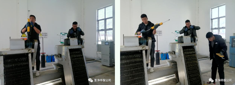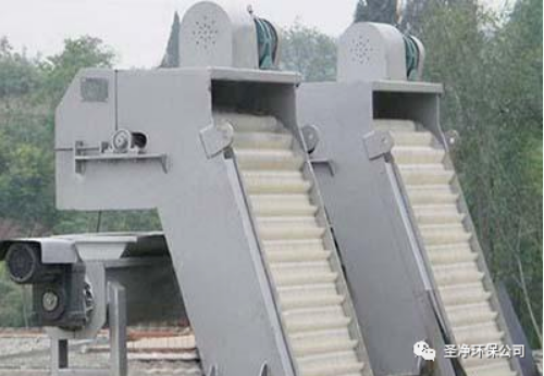 耙齒鏈運(yùn)轉(zhuǎn)到設(shè)備的上部時(shí),由于槽輪和彎軌的導(dǎo)向,使每組耙齒之間產(chǎn)生相對自清運(yùn)動(dòng),絕大部分固體物質(zhì)靠重力落下。另一部分則依靠清掃器的反向運(yùn)動(dòng)把粘在耙齒上的雜物清掃干凈。