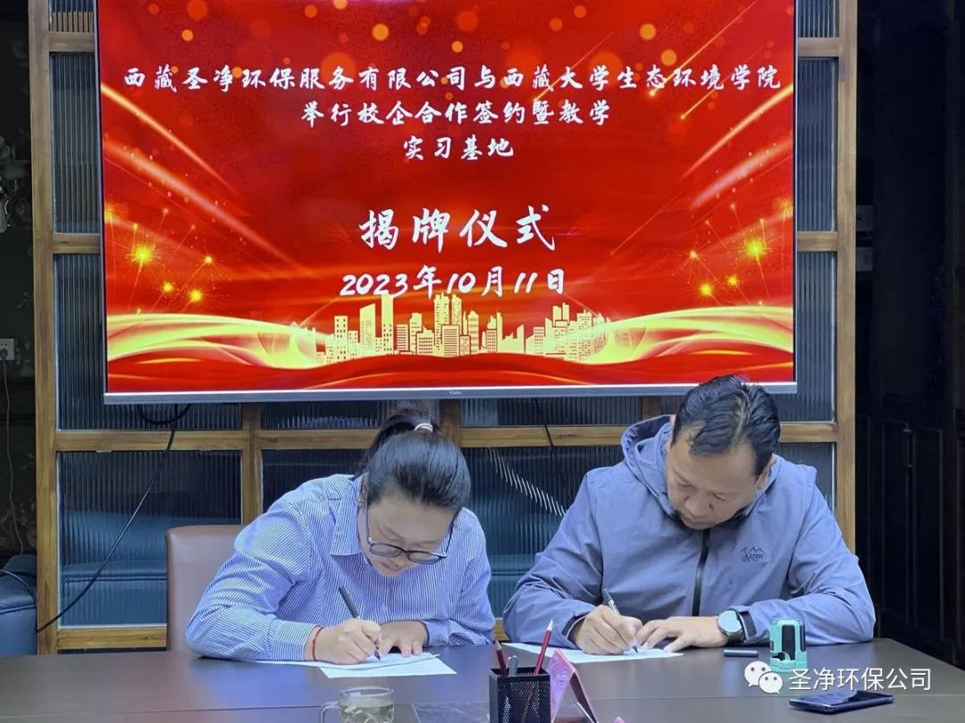 為進一步加強學(xué)校與企業(yè)的合作,適應(yīng)產(chǎn)業(yè)發(fā)展的需求,共同做好畢業(yè)生的就業(yè)工作,并建立長期的人力資源供需協(xié)作關(guān)系,優(yōu)化企業(yè)的人力資源管理,充分發(fā)揮各自優(yōu)勢,促進雙方事業(yè)的共同發(fā)展。2023年10月11日,西藏圣凈環(huán)保服務(wù)有限公司與西藏大學(xué)生態(tài)環(huán)境學(xué)院校企合作簽約暨教學(xué)實習(xí)基地揭牌儀式在我司會議室舉行。