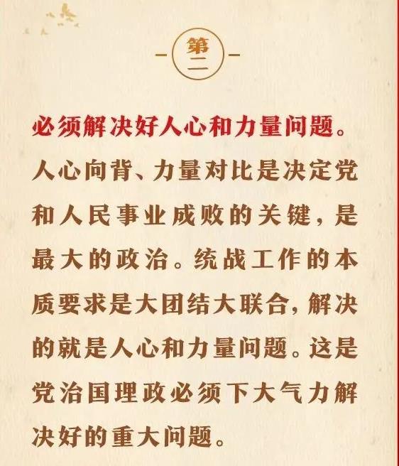1月16日出版的第2期《求是》雜志刊發(fā)習(xí)近平總書記重要文章《完整、準(zhǔn)確、全面貫徹落實(shí)關(guān)于做好新時(shí)代黨的統(tǒng)一戰(zhàn)線工作的重要思想》。在這篇重要文章中,習(xí)近平總書記充分肯定我們黨百年統(tǒng)戰(zhàn)的歷史性貢獻(xiàn)和新時(shí)代統(tǒng)戰(zhàn)工作取得的歷史性成就,用“十二個必須”對關(guān)于做好新時(shí)代黨的統(tǒng)一戰(zhàn)線工作的重要思想作出概括,強(qiáng)調(diào)關(guān)于做好新時(shí)代黨的統(tǒng)一戰(zhàn)線工作的重要思想,是黨的統(tǒng)一戰(zhàn)線百年發(fā)展史的智慧結(jié)晶,是新時(shí)代統(tǒng)戰(zhàn)工作的根本指針,全黨必須完整、準(zhǔn)確、全面貫徹落實(shí)。